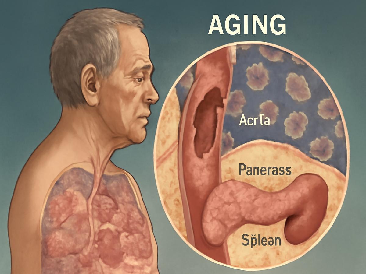 Кровеносные сосуды, в первую очередь аорта, оказались наиболее чувствительными к старению. Аорта, которая снабжает кислородом весь организм, теряет свою эластичность и функциональность. В это же время происходят возрастные изменения в поджелудочной железе и селезенке, что может нарушать метаболические и иммунные функции организма.