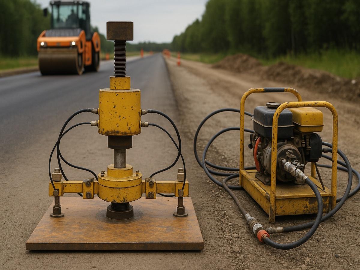 Речь идёт о статическом плотномере с гидростанцией отечественного производства. Он позволяет заранее определить, выдержат ли грунт и покрытие запланированные нагрузки при определённой интенсивности движения.