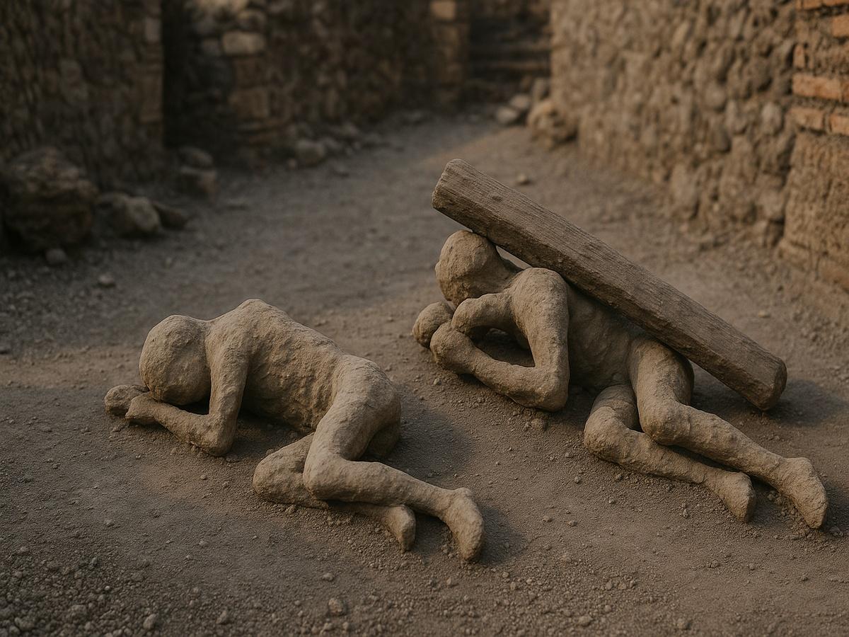 Под скелетами и поверх них лежал слой лапиллей — знак, что смерть настигла их уже после начала извержения, но до падения основного потока пепла.