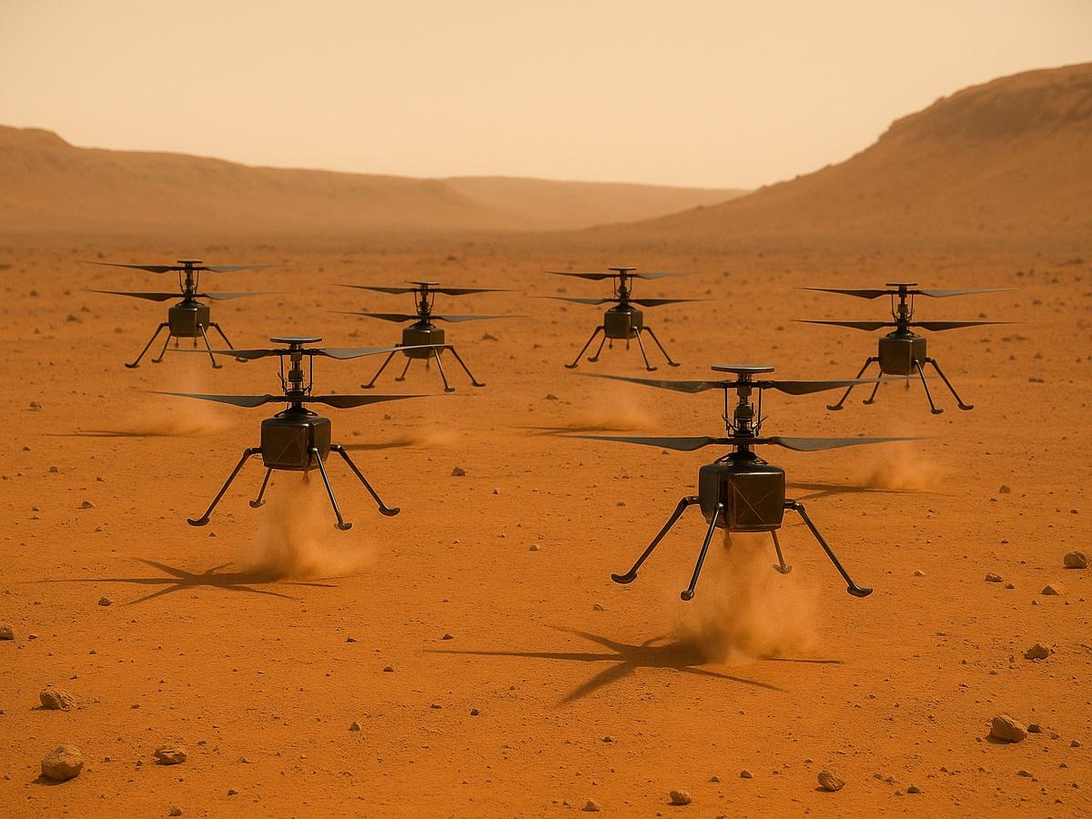 Представьте: шесть автономных вертолётов одновременно спускаются на Марс, чтобы исследовать его поверхность и искать следы воды. Именно такую дерзкую концепцию под названием Skyfall предложила американская компания AeroVironment вместе с Лабораторией реактивного движения NASA (JPL).