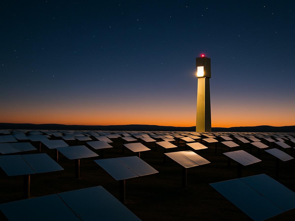 Днём поля гелиостатов — тысячи зеркал — следят за Солнцем, концентрируя свет на башне и вырабатывая электричество. Ночью же они замолкают… пока один учёный не предложил им "вторую смену".
