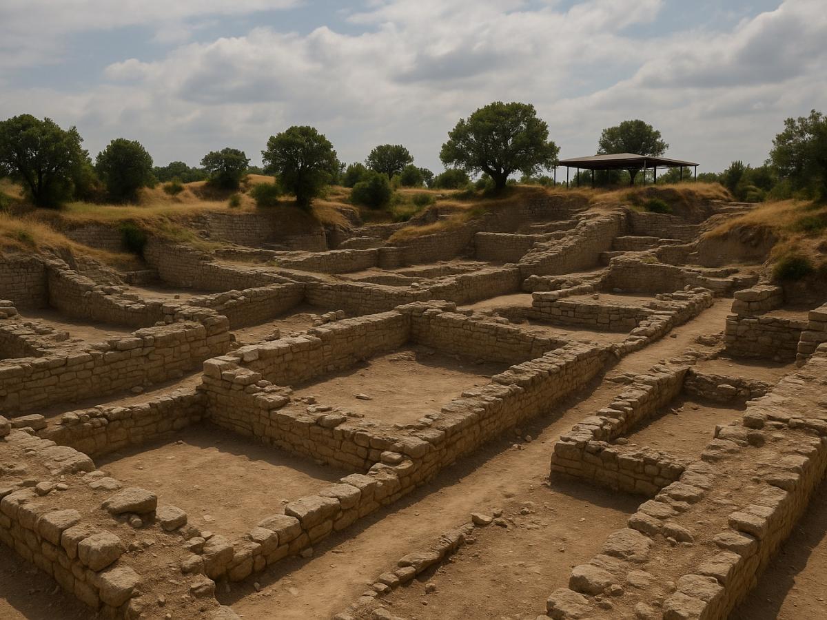 В нижней части города находились простые жилища, выше — более крупные дома знати. Сохранившиеся фундаменты показывают, что некоторые здания имели комнаты, вестибюли и коридоры.