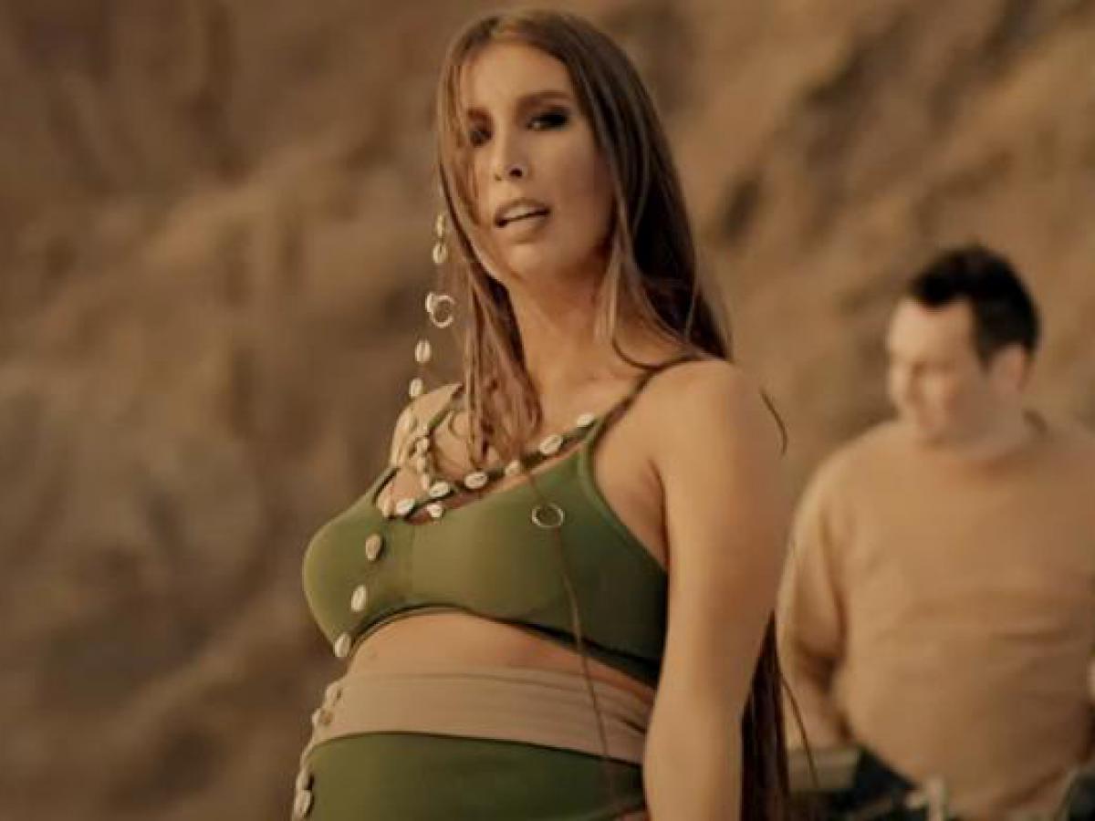 На видео исполнительница предстала в брюках для беременных, которые поддерживали внушительный живот.