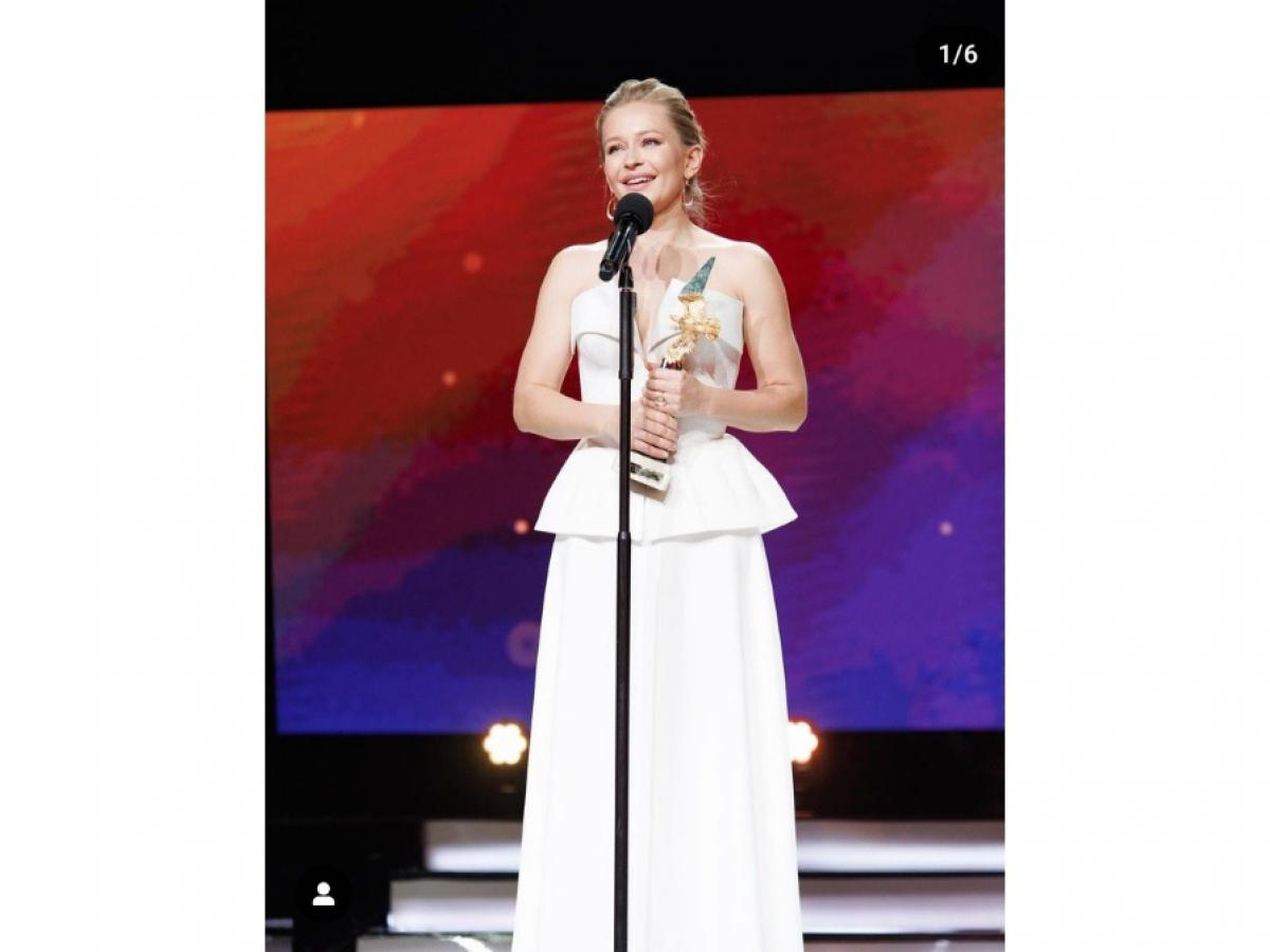 Пересильд поблагодарила киноакадемию за награду в номинации "Первая актриса-космонавт",