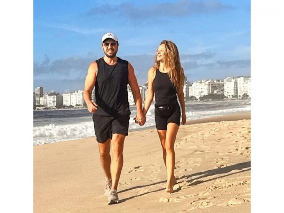Ревва опубликова в своём Инстаграм* фото с женой. На снимке артист шагает, взявший за руку с супругой, по песчанному пляжу. Муж и жена выбрали для прогулки похожие наряды в чёрном цвете.