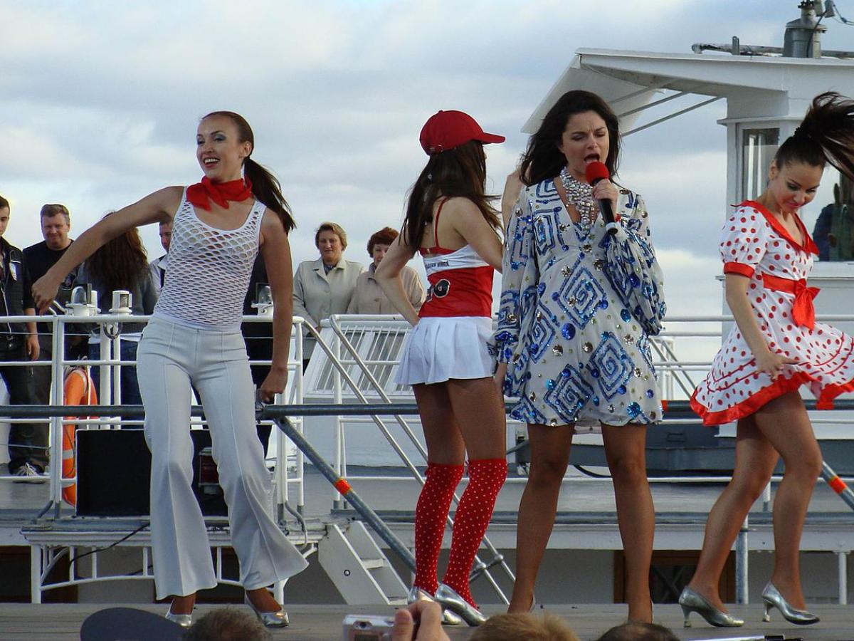 На праздничном концерте она выступила с песней "Только ты не умирай" в Кремлевском дворце, надела элегантное платье и приколола георгиевскую ленту, символ Победы, запрещенный в ее родной Украине.