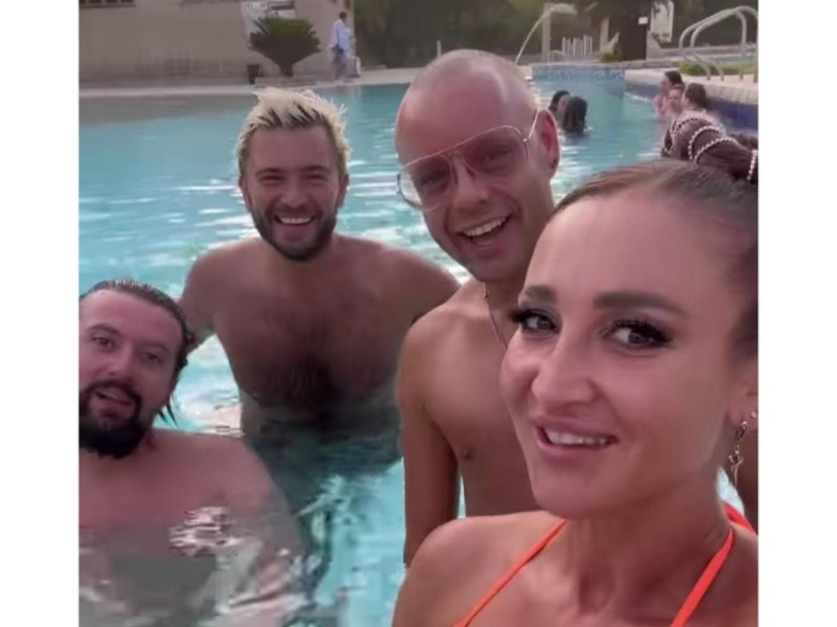 Бузова опубликовала в сторис "Инстаграма"* кадры из бассейна. Вместе со звездой отдыхали трое красавцев.