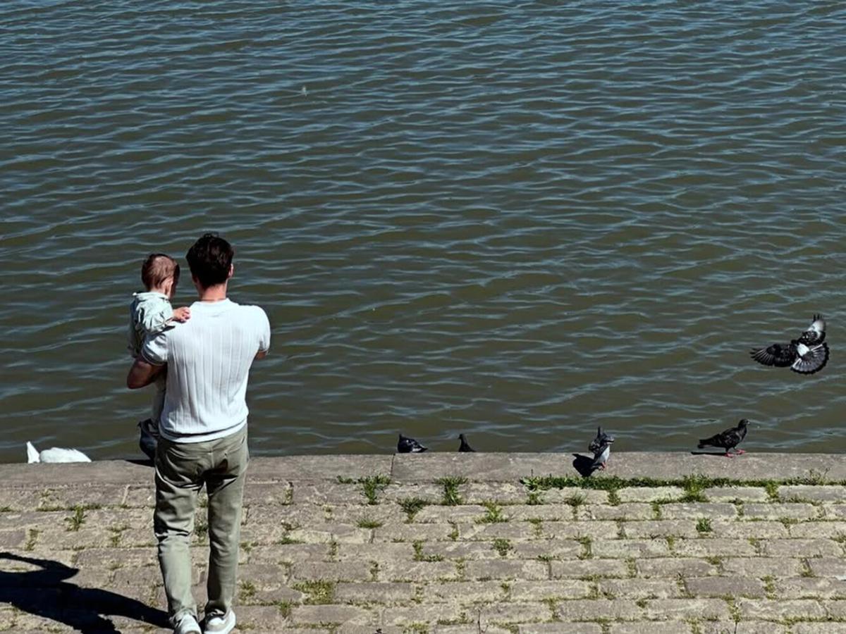 На фото артист, одетый в голубую рубашку-поло, зелёные джинсы и кроссовки, запечатлен у водоёма, держащим на руках малыша. Публикация стала редким откровением о личной жизни звезды, которая обычно избегает публичности.