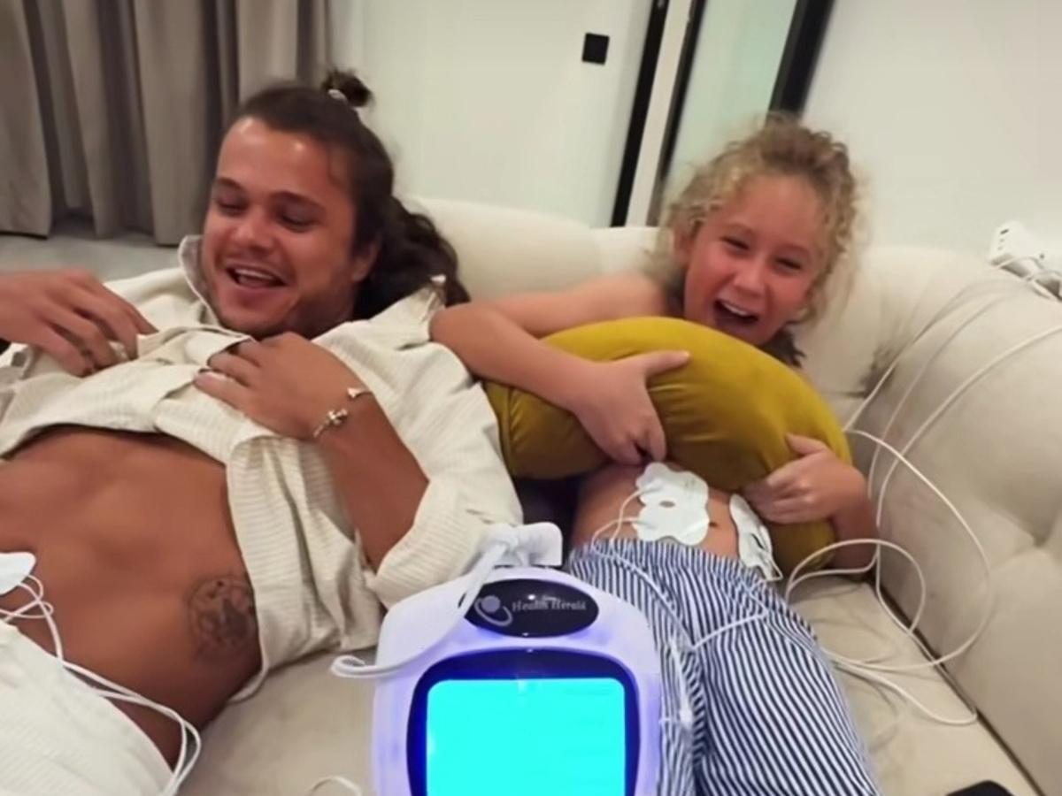 Айза Долматова опубликовала в социальных сетях видео с неким прибором. Она подключила устройство с проводами к животам жениха и сына и начала нажимать на кнопки. Мужчины приготовились к экзекуции.