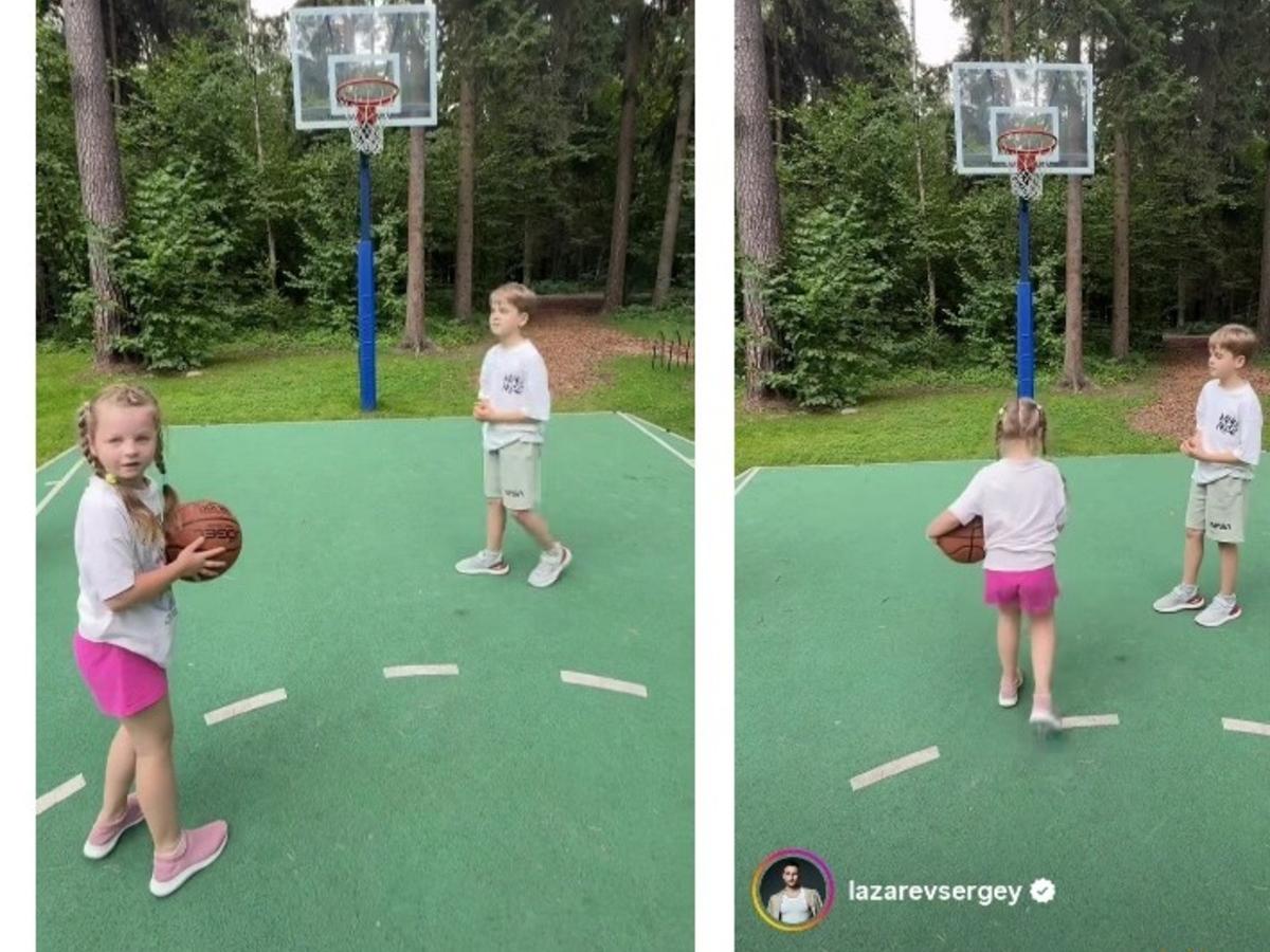 Сергей Лазарев опубликовал видео в социальных сетях. На кадрах его десятилетний сын Никита и шестилетняя дочь Аня играют в баскетбол.