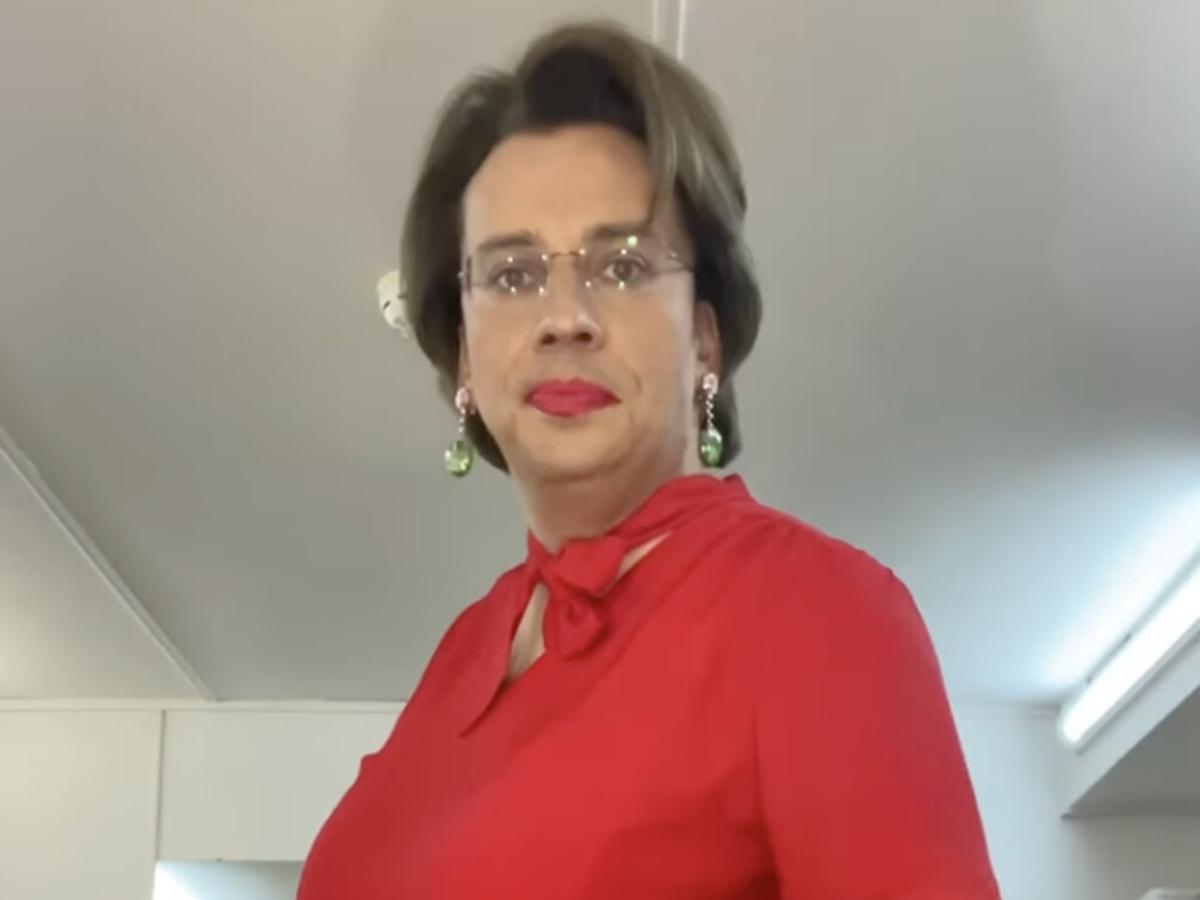 В видео Галкин, наложив яркий макияж и надев красную блузку с юбкой-брюками, создал комедийный образ. Артист дополнил его серьгами и кольцами.