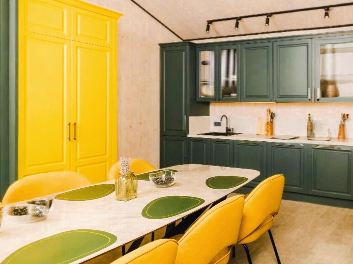Актриса признавалась, что давно планировала обновить обстановку в доме, поэтому заказала новые шкафы и современную технику. По словам Муцениеце, кухня выполнена в сдержанной цветовой гамме, однако благодаря продуманному дизайну и дополнительным источникам света мебель не кажется тусклой или мрачной.