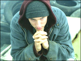 В середине 90-х белый юноша Маршалл Мэзерс III стал рэппером Эминемом, в начале 2000-х рэппер Эминем стал главным действующим лицом мировой поп-музыки, а в 2002-м главное действующее лицо оказалось персонажем кинофильма: Эминем сыграл главную роль в фильме "Восьмая миля". Герой Эминема живет в Детройте середины 90-х, его обманывают подружки, его выгоняет из дома мать, а единственным развлечением для него являются поединки рэпперов.