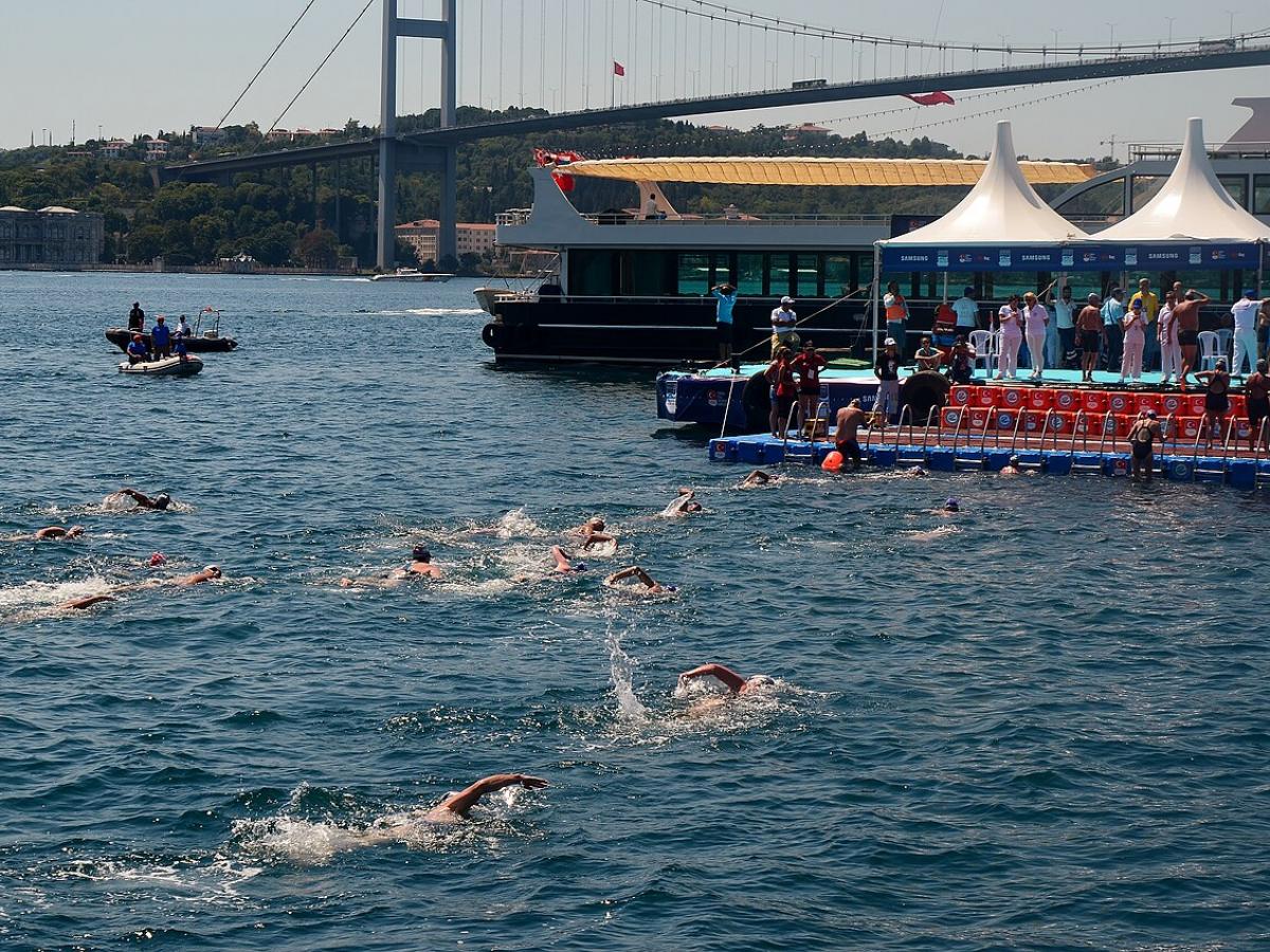 Заплыв через Босфор — особое спортивное событие. Дистанция в 6,5 километра проходит по течению пролива, соединяющего Чёрное и Мраморное моря. Его уникальность в том, что спортсмены пересекают границу двух частей света — Европы и Азии.
