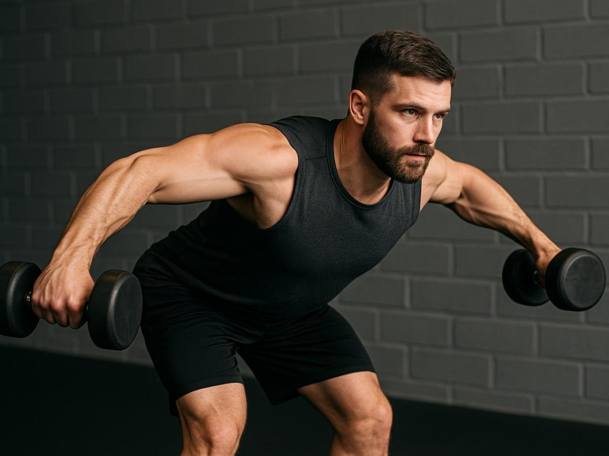 Если гантели поднимаются выше параллели с полом, нагрузка смещается на трапециевидные мышцы. В итоге дельты устают меньше, а трапеции перетренировываются. Оптимальная амплитуда — подъём до линии плеч, без выхода выше горизонтали.