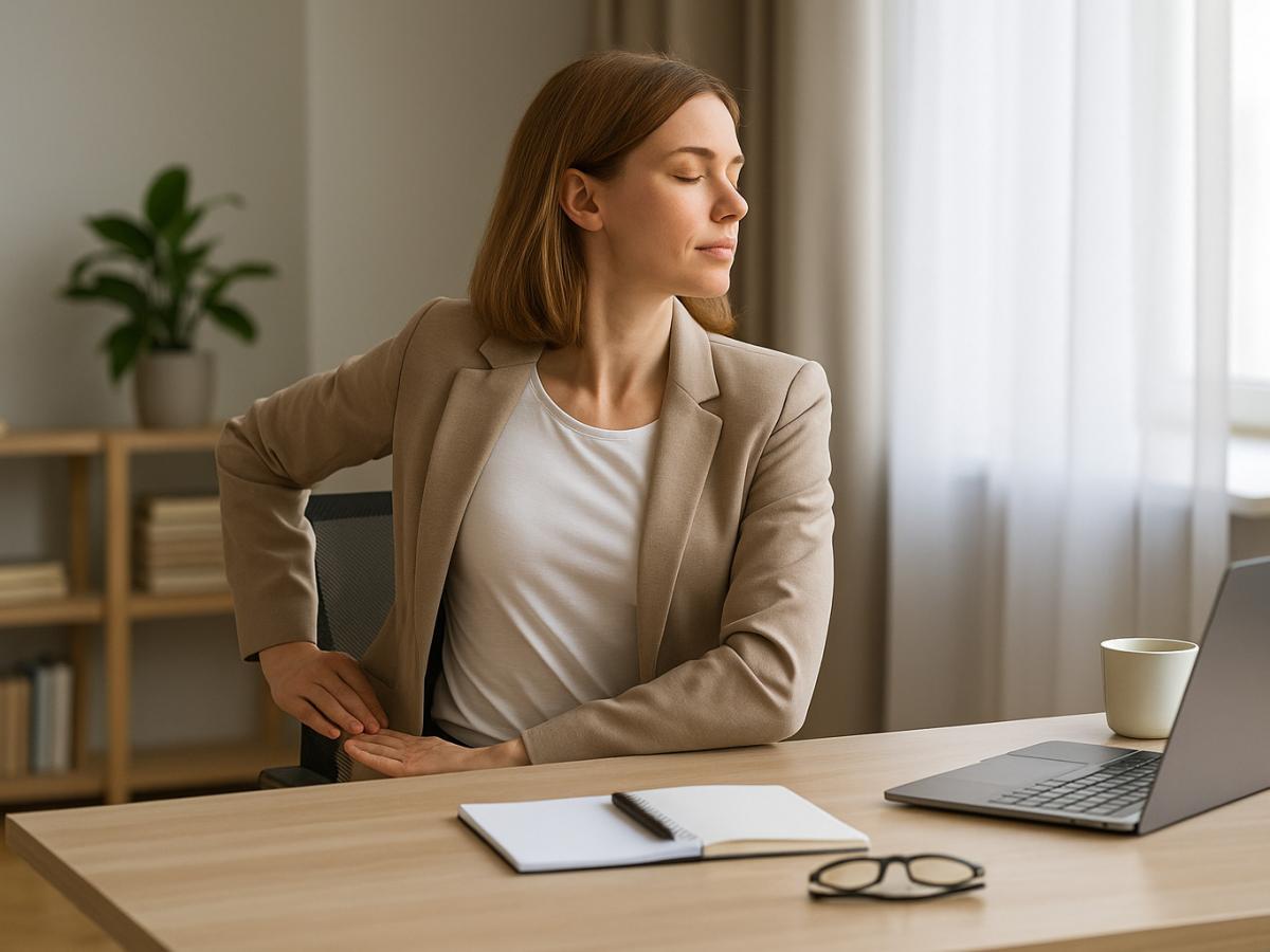 Если можете — каждые пару часов вставайте и немного пройдитесь. Даже короткая прогулка по офису улучшает кровообращение и уменьшает нагрузку на спину.