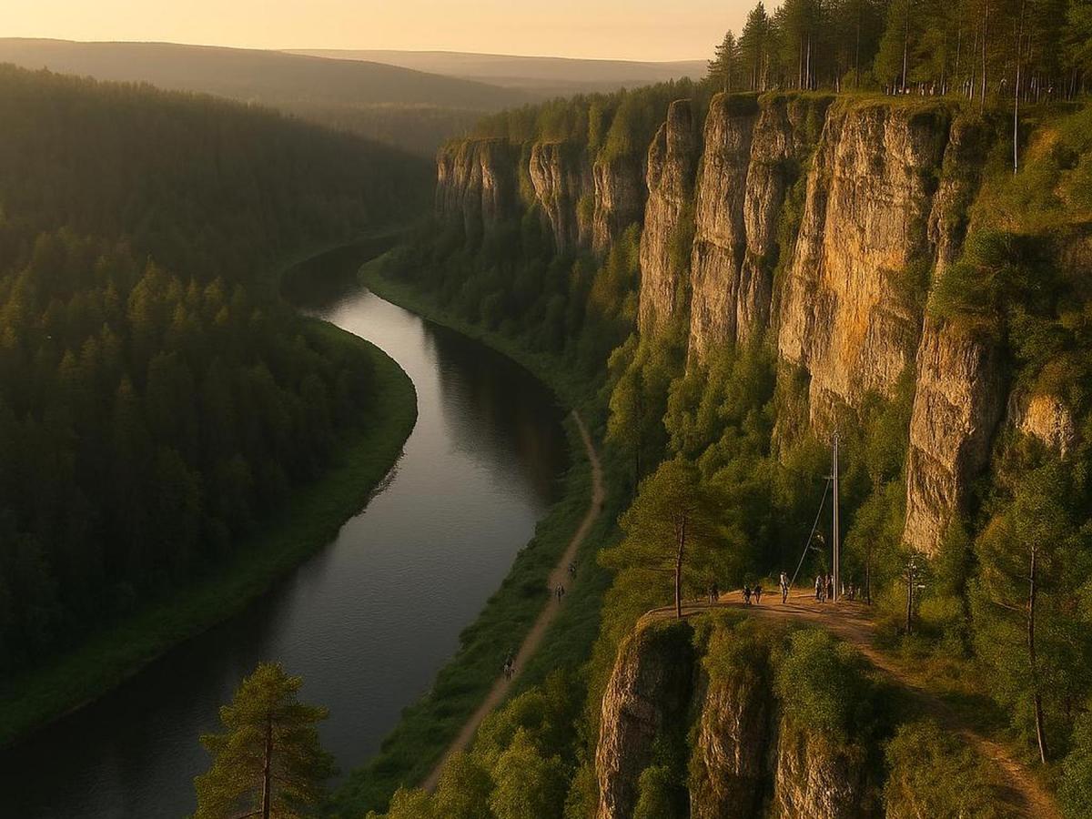 Река Ай по праву считается одной из самых живописных на Южном Урале. Её украшение — скалы-притёсы, получившие своё название от слов "тесать" и "утёс". Эти известняковые стены высятся вдоль русла и напоминают окаменевших гигантов, охраняющих спокойствие воды. Внутри скал прячутся пещеры — мечта спелеологов со всей страны.