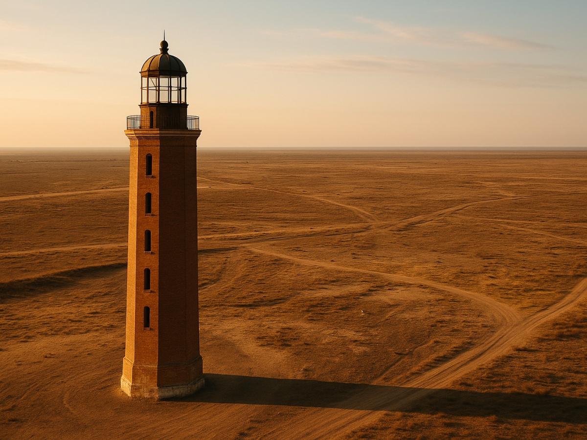 Можно ли представить маяк в десятках километров от моря, стоящий в одиночестве среди бескрайней степи? В Астраханской области такое возможно. В селе Вышка на глазах путешественников вырастает Четырёхбугорный маяк — забытая сторожка навигации, которая когда-то спасала корабли, а теперь хранит память о прошлом.