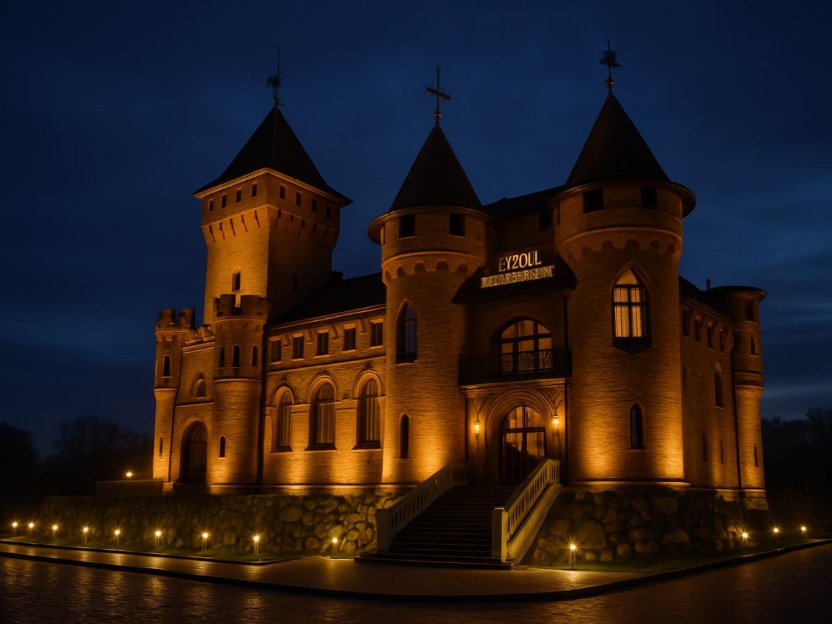 В замке часто проходят свадьбы, дни рождения, корпоративные ужины. Один из таких вечеров — как пример — прошёл в уютной приватной зоне ресторана, где интерьер особенно впечатляет. Закрытые двери добавляют уединения, а оформление словно переносит в другую эпоху.