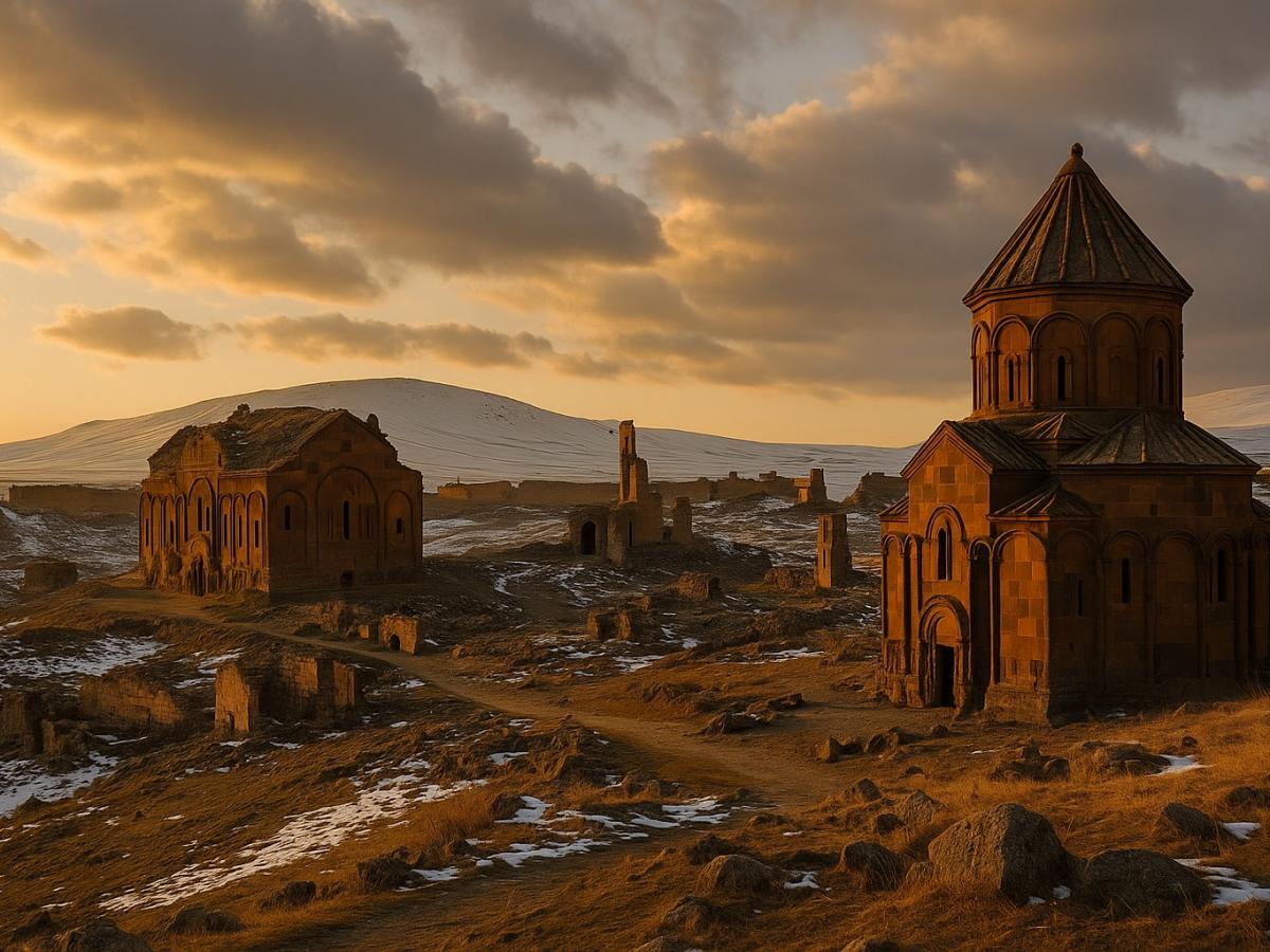 На границе с Арменией стоят руины средневекового города Ани — некогда столицы Армянского царства. В X веке здесь проживали до 100 тысяч человек, а теперь остались лишь величественные стены, соборы и крепости. Туристов почти нет, что позволяет в полной мере прочувствовать дух заброшенного города. Атмосфера особенно завораживает зимой, когда руины покрывает снег, превращая их в декорацию к историческому эпосу.
