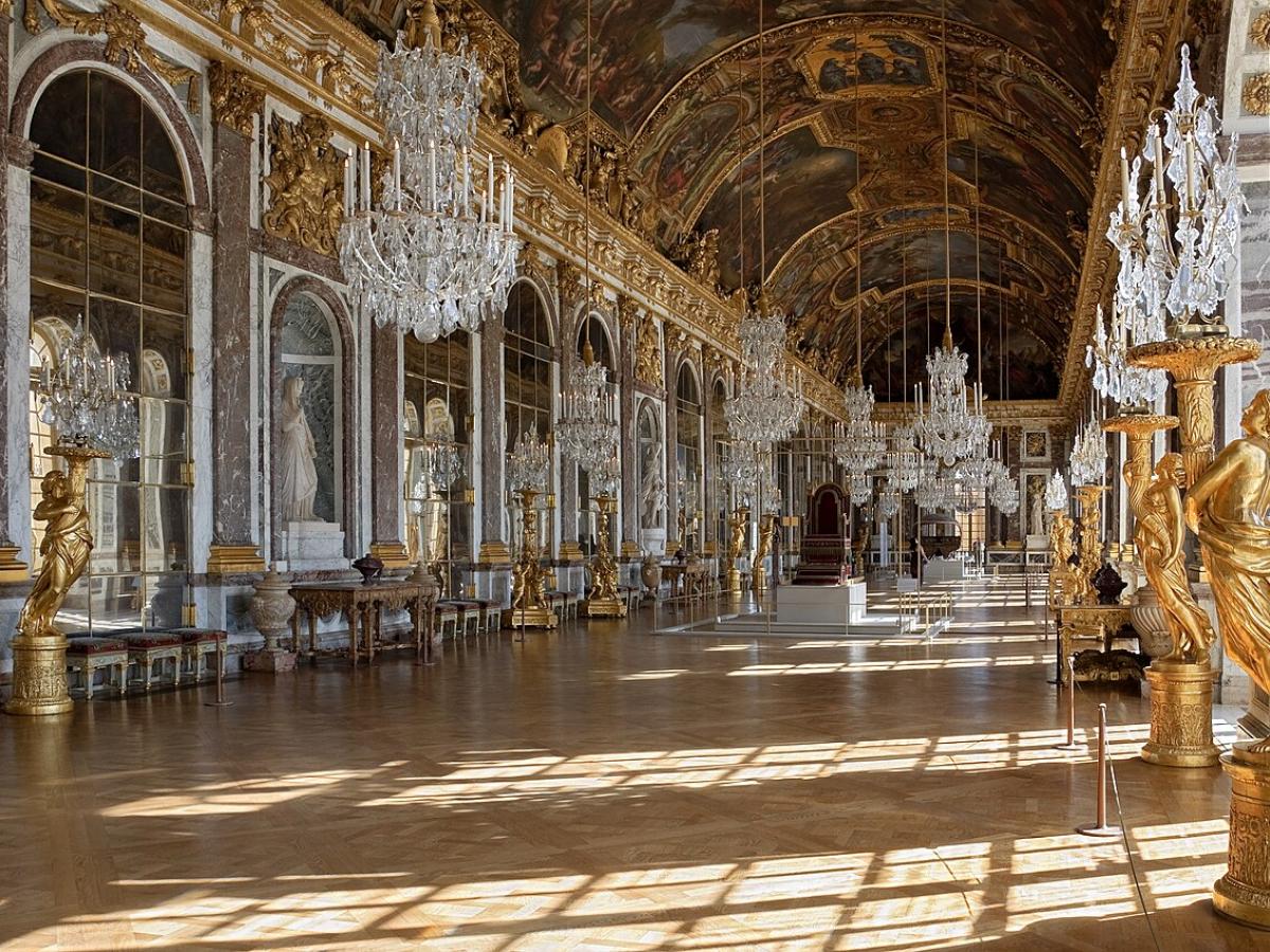 От охотничьего домика Людовика XIII к "сцене" Короля-Солнце. Лево, Ардуэн-Мансар, Лебрен и Ленотр спроектировали машину представительства: анфилады, зеркальная галерея, геометрия аллей и водомётов. До Революции — дом Бурбонов, затем — место нац. ритуалов и музея. Масштаб: свыше 60 тыс. м², сотни залов, десятки лестниц, скрытых проходов.