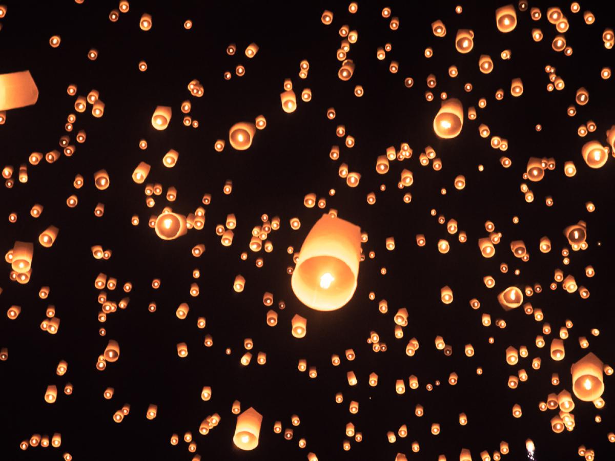 Главная традиция — запуск в небо тысяч бумажных фонариков кхом лой, символизирующих очищение и исполнение желаний.
