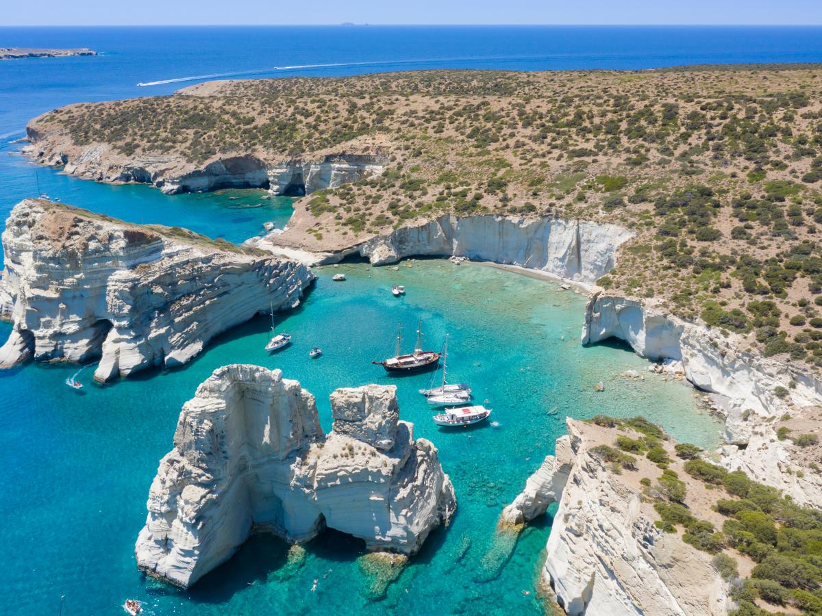 Милос известен необычными пейзажами и более чем 70 пляжами. Его вулканическое происхождение заметно в формах берегов и цвете воды. Особенно впечатляет пляж Саракинико с белыми скалами, напоминающими лунный ландшафт.