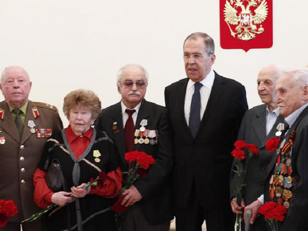 Затем глава российского МИД вручил ветеранам Великой Отечественной войны, живущим в Германии, юбилейные медали в честь 75-летия Победы.