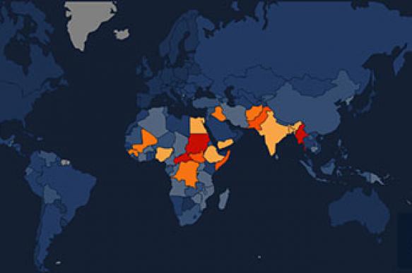 По мнению аналитиков, нынешняя ситуация в мире следующая. В красной зоне с наиболее высокой статистической вероятностью насилия находятся три страны - Мьянма, Нигерия и Судан. В первой вероятность таких событий, по подсчётам авторов проекта, составляет рекордные на данный момент 13,2%. В проблемных оранжевой и жёлтой зонах находятся в основном государства Южной Азии, Ближнего Востока и Северной Африки.
