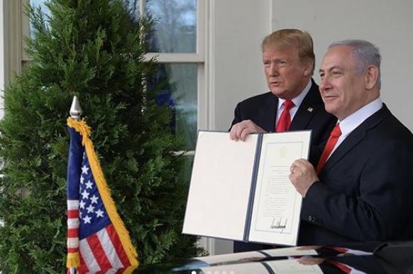 25 марта во время встречи с Биньямином Нетаньяху Дональд Трамп официально признал суверенитет Израиля над Голанскими высотами, которые являются международно признанной территорией Сирии. Пресс-секретарь президента Дмитрий Песков заявил, что этот шаг может "существенно дестабилизировать и без того напряженную ситуацию на Ближнем Востоке".
