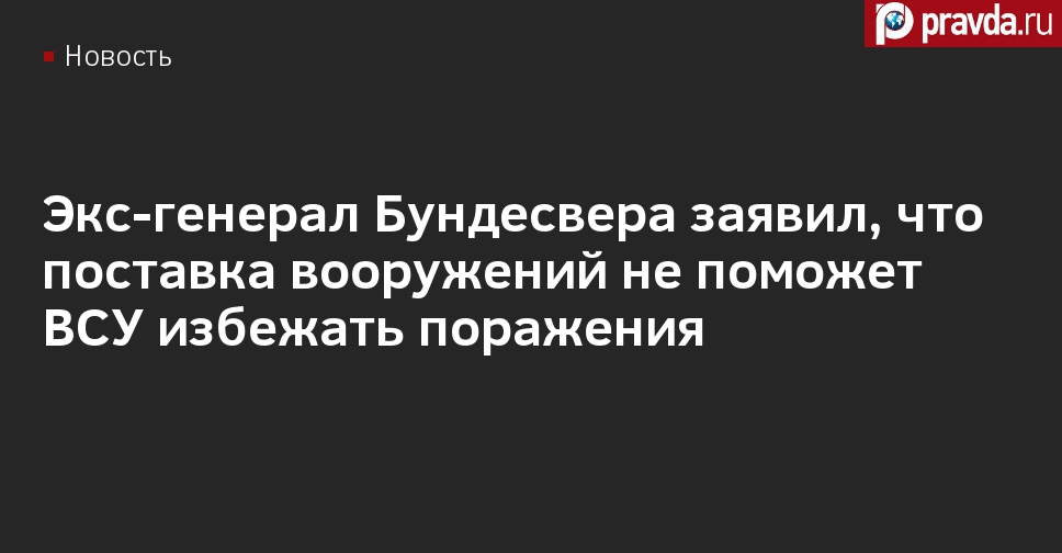 Согласно мнению генерала бундесвера в отставке Харальда Куята, западная военная техника, поставляемая Украине, не сможет помочь ее Вооруженным силам достичь положительных результатов в конфликте. Об этом он заявил в интервью YouTube-каналу Flavio von Witzleben.