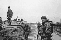 — Никому война не нужна — ни русским, ни простым чеченцам. Моя семья всегда дружила с русскими соседями. Я хотел стать военным. Поехал в г.Балашов, поступил в училище тыла. На меня ребята косятся, чечен, мол... Пришлось вернуться в Грозный, надо кормить мать, отца, сестёр, которые нигде не работают. Будет мир — буду учиться.
