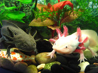 Однако если переселить животное в более сухой и прохладный климат или понизить уровень воды при домашнем разведении, он превращается во взрослую форму, которая называется амбистома (Ambystoma mexicanum). Это существо, являющееся ближайшим родственником американских саламандр наоборот, очень редко забирается в воду, предпочитая жить под корягами или камнями недалеко от воды. Кожные жабры у нее отсутствуют, да и внешне она уже больше напоминает настоящего тритона, а не головастика-переростка. Но, тем не менее, с моей точки зрения, при подобном превращении амбистома утрачивает все то очарование, которое свойственно аксолотлям.