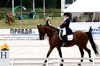 «Я долго искала подходящую музыку», - говорит ставшая здесь уже двукратной победительницей «Кубка мэра» в КЮРе «Большого приза» Ксения Морозкина, - и выбрала попурри русских песен и романсов в исполнении чешского симфонического оркестра. - А знакомый ди-джей из Бежецка сделал окончательный вариант». Ее 16-летняя Леди Люкс - весьма стабильная лошадь. В этом сезоне она уже привезла победы в «Большом призе» и КЮРе на международном турнире в Нижнем Новгороде!».