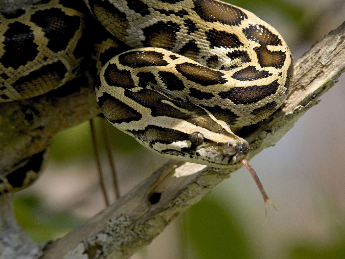 Иероглифовый питон (Python sebae) — неядовитый гигант из тропической Африки. Его тело может достигать 6 метров в длину, а вес — до 100 килограммов. Окрас змеи похож на узоры, напоминающие иероглифы, что помогает ей сливаться с окружающей средой. Птицы и млекопитающие — главная цель его охоты.