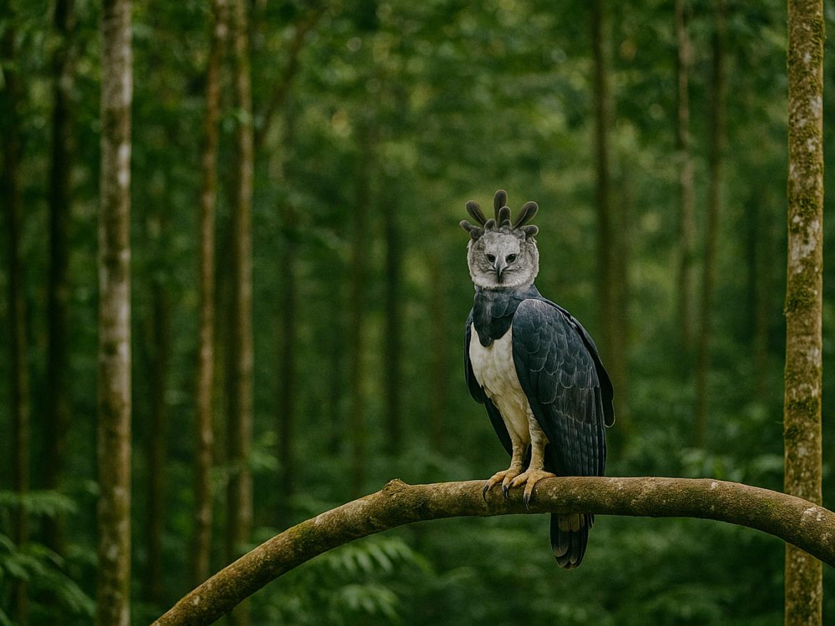Орёл-гарпия — одна из самых крупных и сильных хищных птиц планеты. Его легко узнать по массивному телу, коротким широким крыльям и длинному хвосту, обеспечивающему манёвренность в густом лесу. Длина взрослой птицы достигает 90-100 см, размах крыльев — около 2 м. Самки почти вдвое крупнее самцов и могут весить до 9 кг.