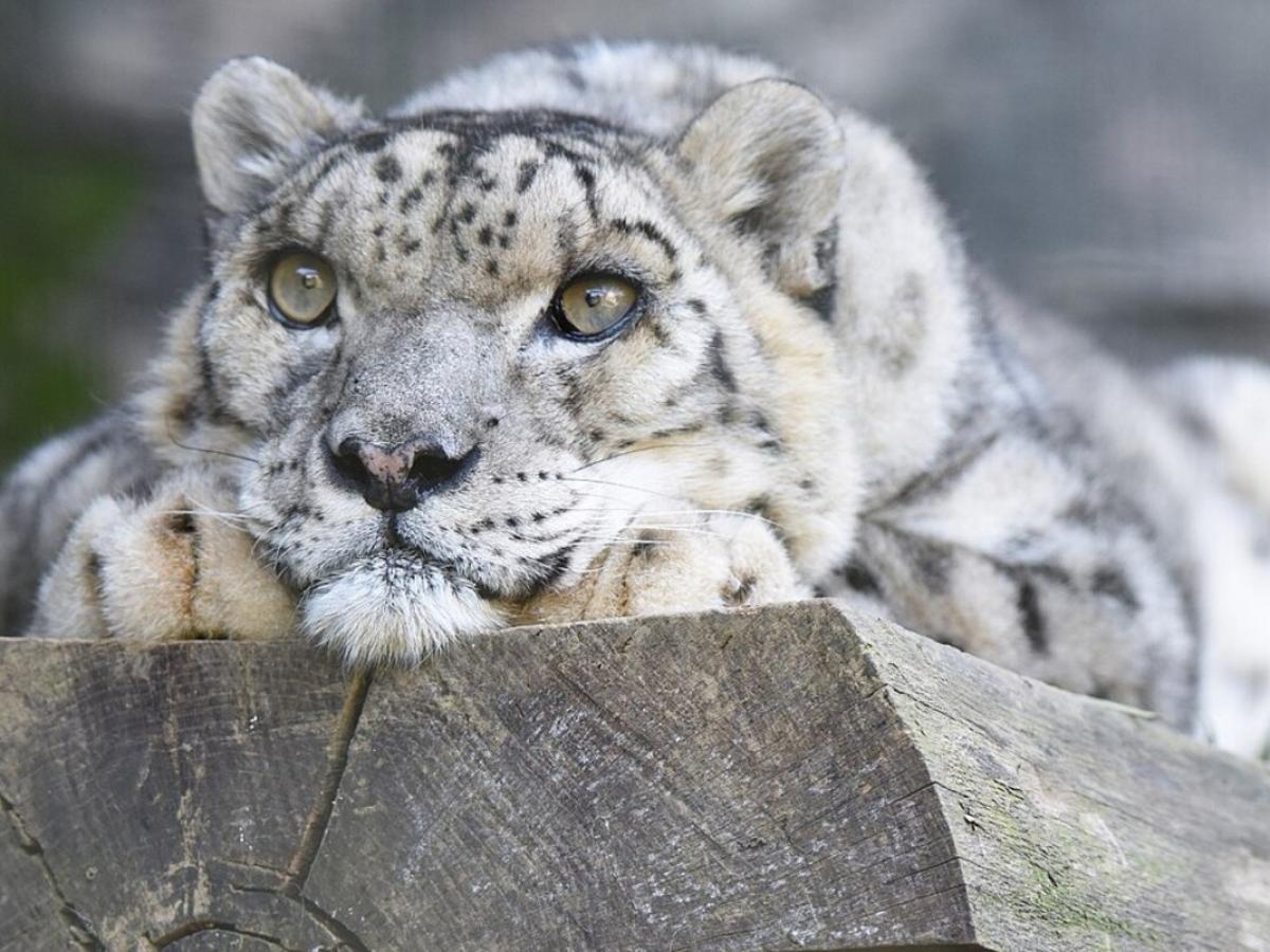 Окрас: светло-серый с пятнами, идеально сливается с камнями и снегом.