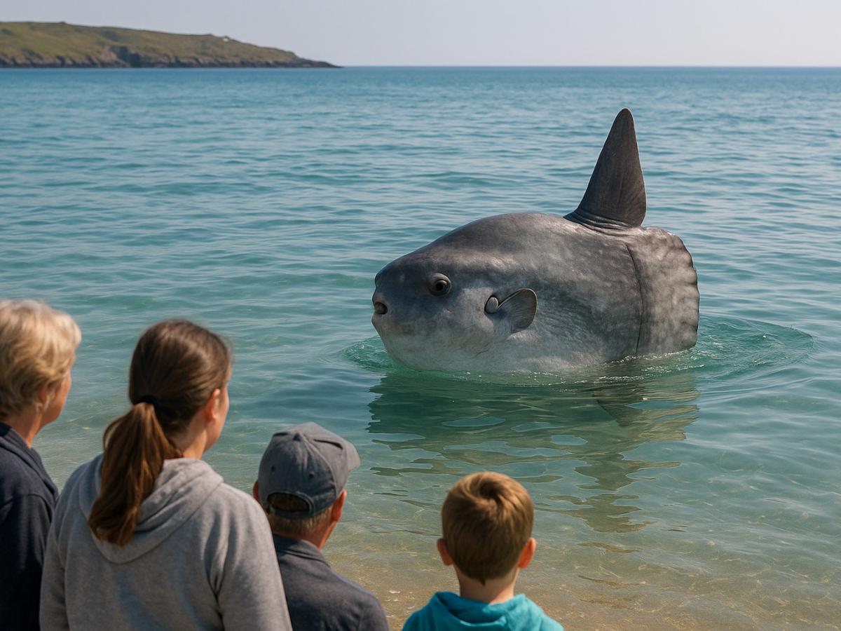 На побережье графства Корнуолл туристы стали свидетелями редкой встречи с морским гигантом. Недалеко от Сент-Айвса в спокойной воде появилось массивное дисковидное существо, которое сначала вызвало удивление, а затем — тревогу у отдыхающих.