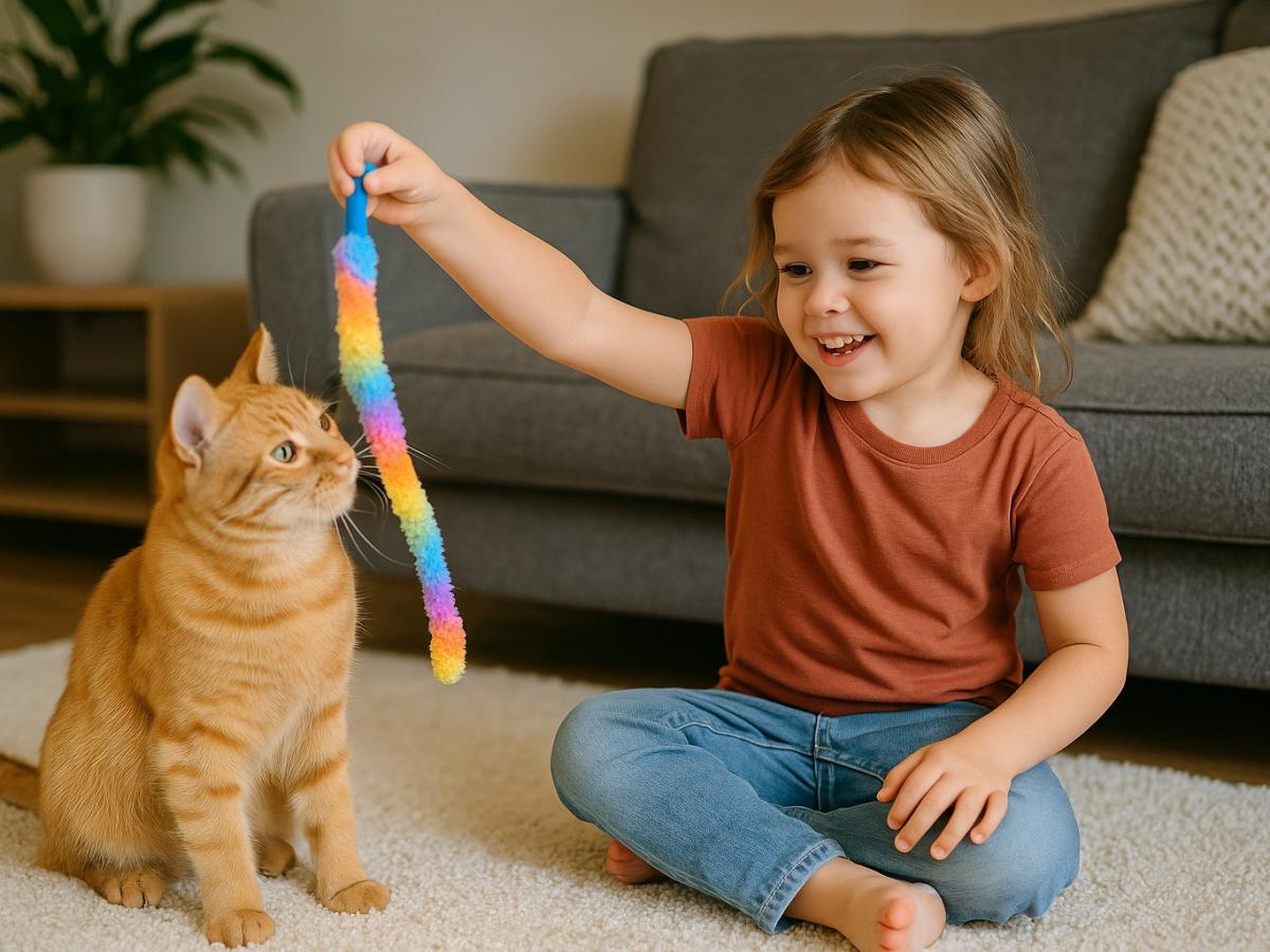 Тактильный контакт и игры. Важно учить ребёнка гладить животное аккуратно, с уважением к его границам. Это развивает бережное отношение и эмпатию.