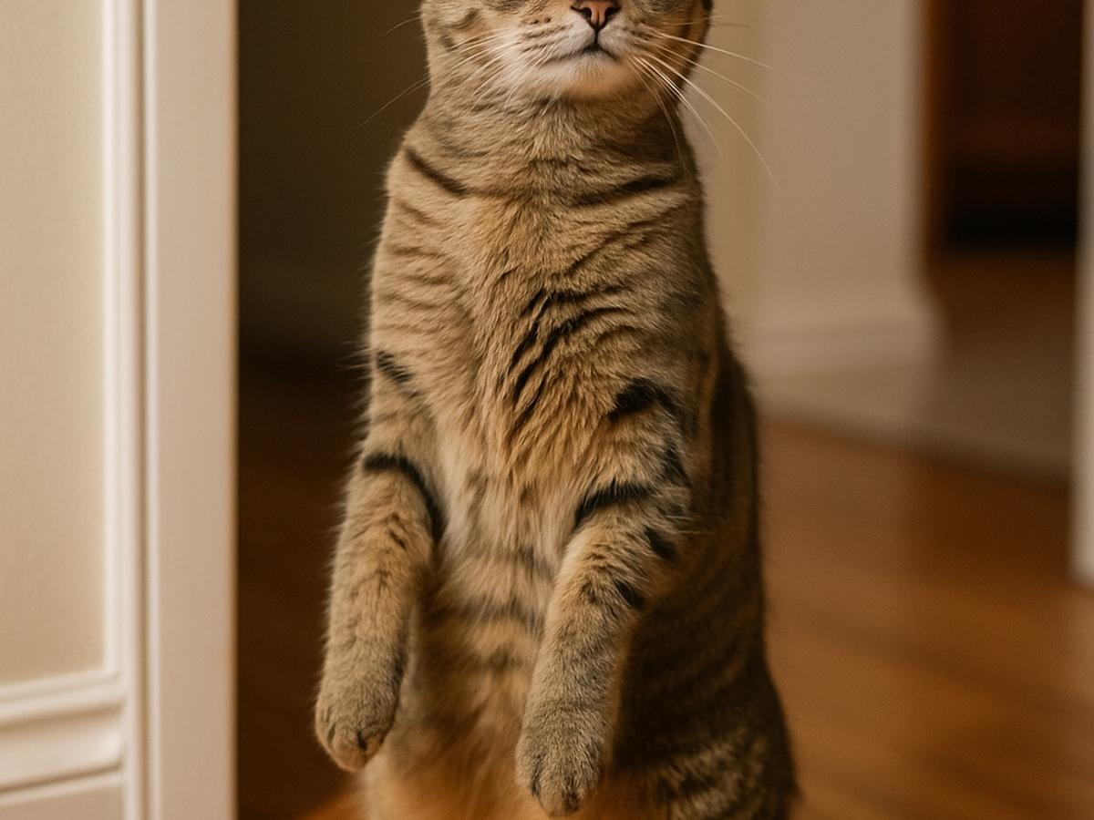 Иногда кот принимает вертикальное положение не из любопытства, а от неожиданности. Резкий звук или странный предмет способны настолько озадачить животное, что оно встаёт на задние лапы, словно пытаясь лучше понять происходящее.