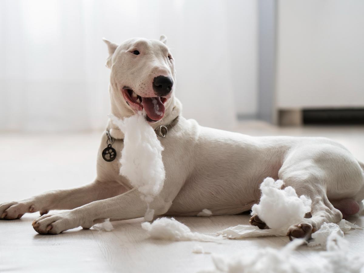 Если оставить бультерьера надолго одного дома, он может начать портить мебель, обувь и даже стены. Это не злоба, а способ снять стресс. Решение простое — физическая и умственная нагрузка плюс присутствие хозяина.