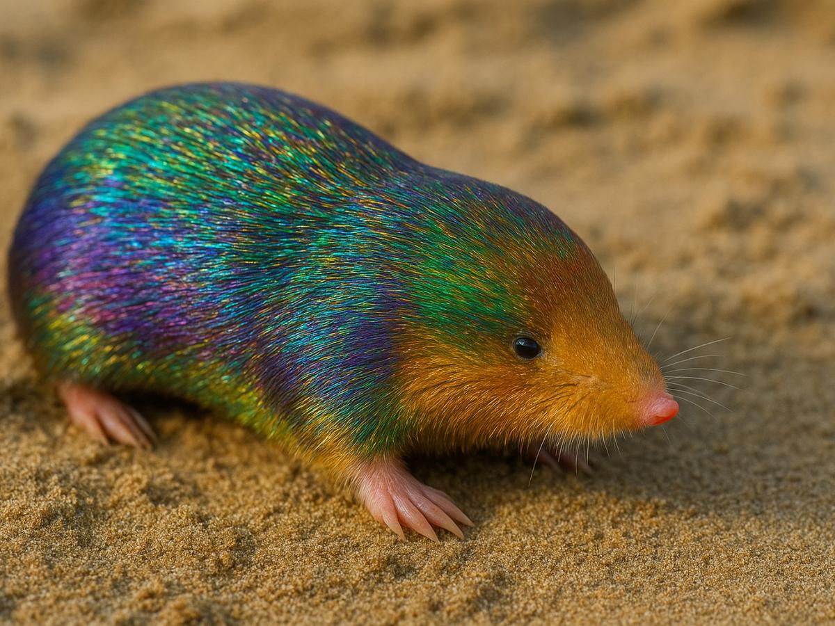 Долгое время считалось, что переливающийся мех — исключительная особенность золотых кротов. Эти крошечные обитатели песков Южной Африки казались единственными млекопитающими, чья шерсть сияет всеми цветами радуги. Однако новое исследование перевернуло это представление: теперь известно, что радужный блеск встречается у 14 видов животных. Среди них — африканская травяная крыса, западноафриканская мохнатая крыса, гигантская выхухоль и несколько других мелких млекопитающих.