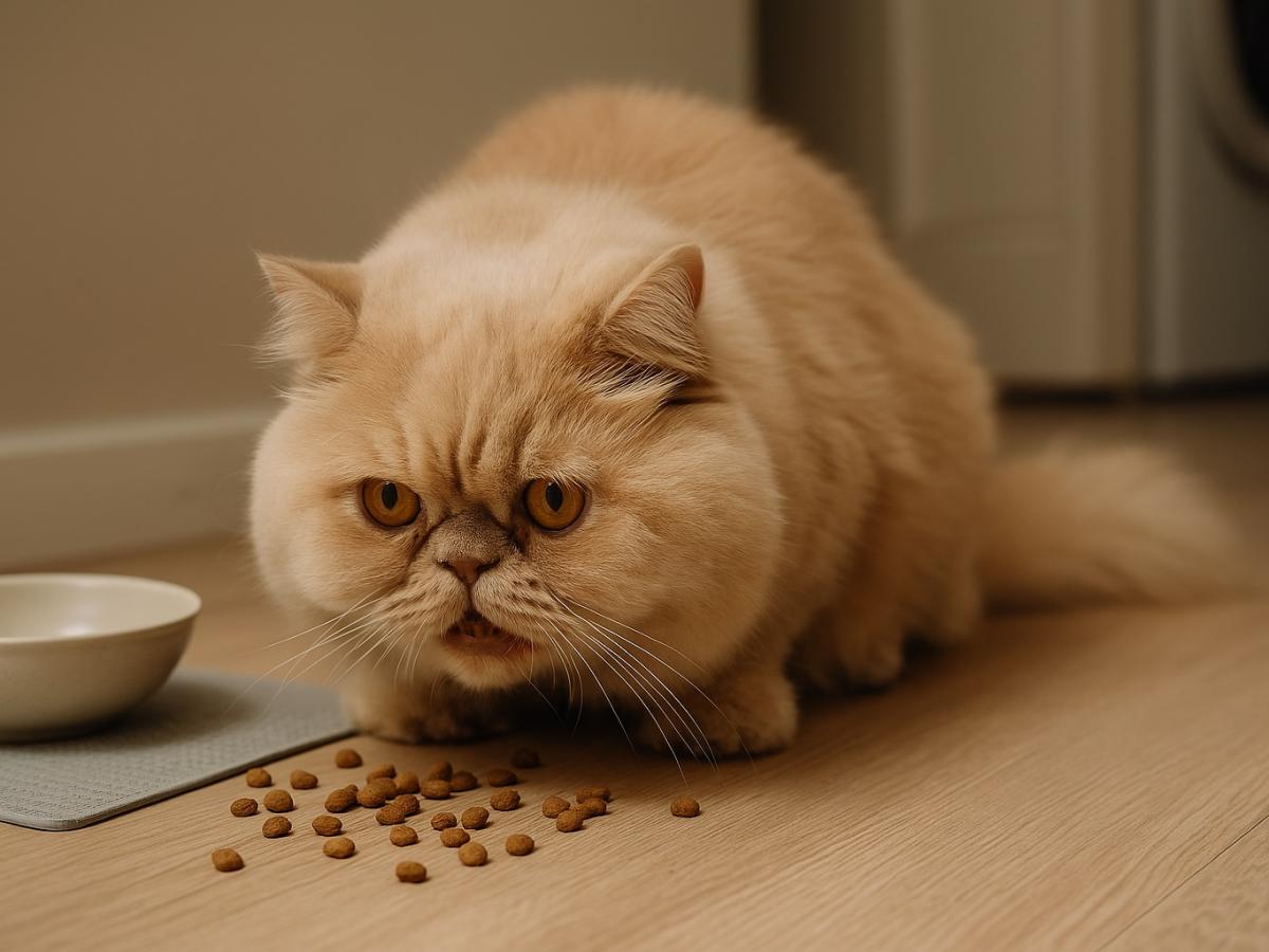 Иногда всё проще: кошке просто не нравится вкус или запах. Она пробует, выбирает кусочек, отходит и ест на расстоянии от миски — как будто надеется, что на полу еда станет вкуснее.