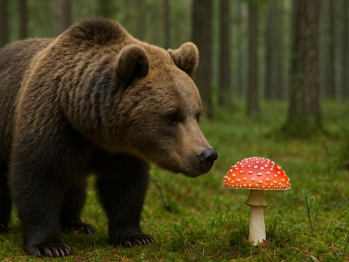 Медведь — настоящий гурман среди диких животных. Он не просто ищет пропитание, а устраивает себе целое меню, где грибы занимают особое место. Осенью, когда пора наедать жир перед зимней спячкой, Косолапыч превращается в шеф-повара леса: знает, где растёт лучший "урожай", какие грибы съедобны, а какие лучше обойти стороной.