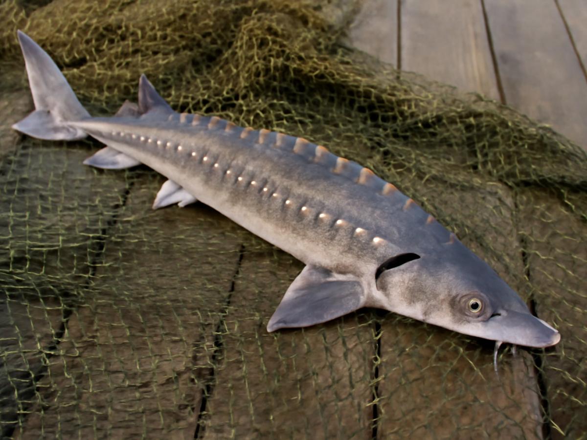 Он мельче белуги, имеет вытянутую форму тела и характерные костяные пластинки на боках, за что получил название.