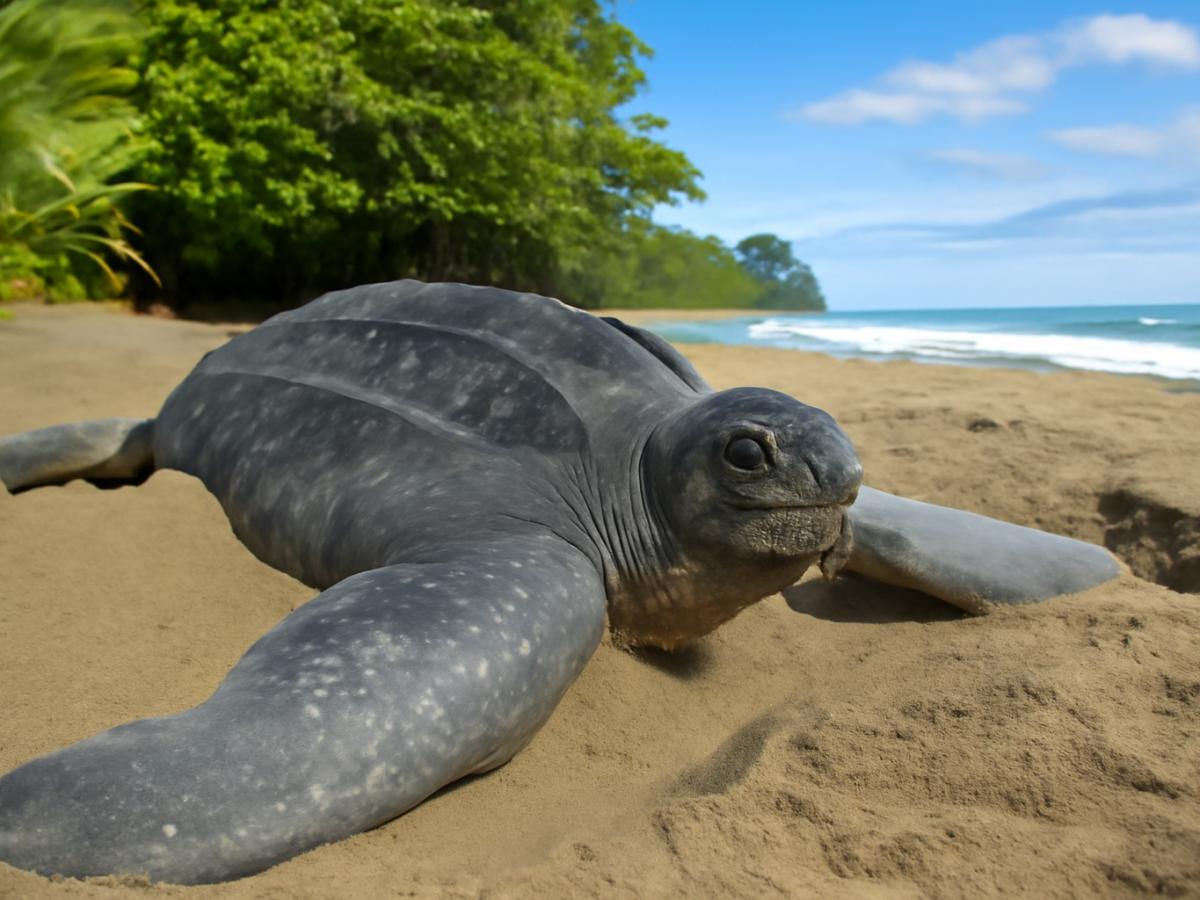 Кожистая черепаха — самая большая морская черепаха в мире, способная развивать скорость до 35 км/ч.