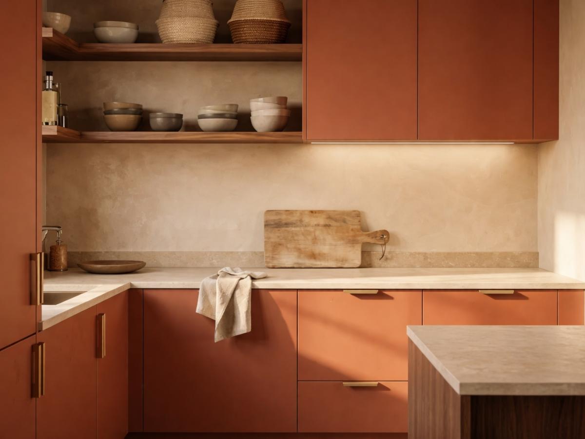 Многие специалисты связывают популярность земляных оттенков с потребностью людей находить спокойствие в домашнем пространстве. Теплые коричневые, терракотовые и песочные тона хорошо смотрятся как на фасадах шкафов, так и на стенах, при этом менее требовательны к уборке. Подобные решения помогают скрыть мелкие следы эксплуатации и сохраняют аккуратный вид кухни на годы.