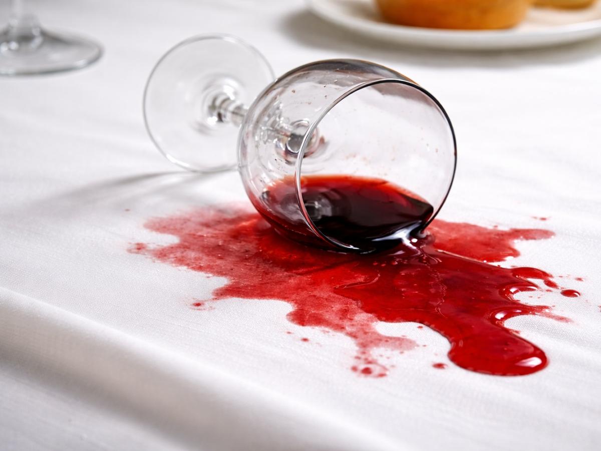 Пятна от красного вина традиционно удаляют солью. Она впитывает влагу и часть пигмента. Дополнительно можно использовать газированную минеральную воду или смесь средства для посуды и 3-процентной перекиси водорода.