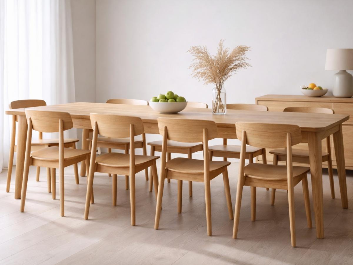 Дуб, ясень и бук остаются вне конкуренции. Такие стулья добавляют интерьеру тепла, особенно в холодные месяцы, и хорошо работают с естественным светом. Матовая, натуральная отделка усиливает ощущение уюта и делает столовую визуально светлее.