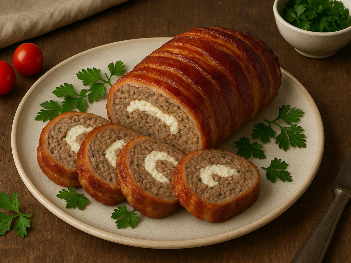 Чтобы рулет получился особенно нежным, не утрамбовывайте фарш слишком плотно. Используйте качественный бекон — он влияет и на вкус, и на сочность. Если хотите более выраженный аромат, можно добавить немного тмина или молотого перца, не перебивая базовый вкус мяса.